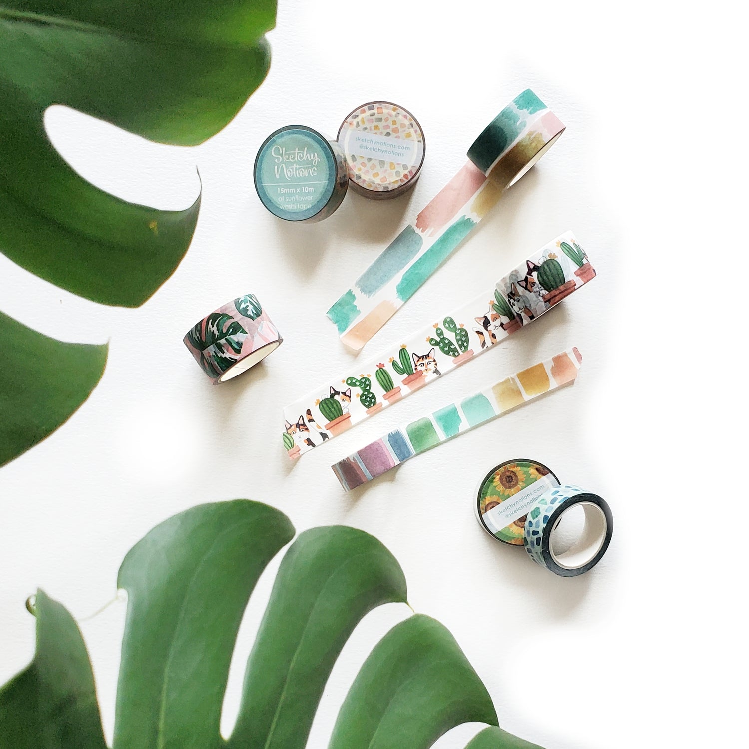 Rolls of washi tape with watercolor illustrations in two fun and useful...