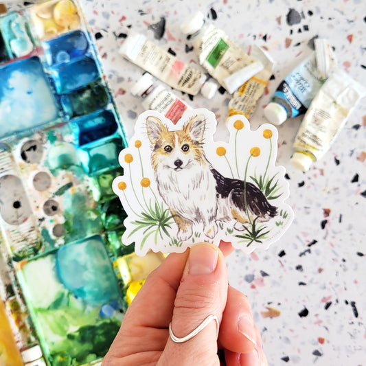 Tiny Dog and Flower Sticker 5 - Corgi with Craspedia