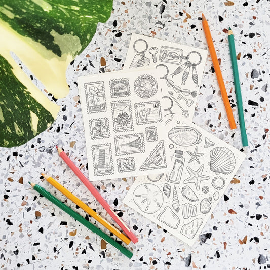 Travel Souvenirs Coloring Postcard Set