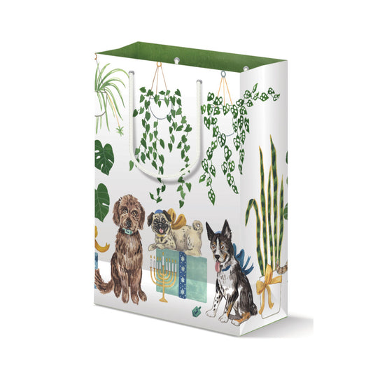 Hanukkah Cats + Dogs with Plants Watercolor Gift Bag