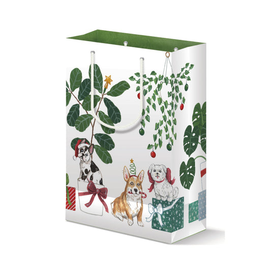 Christmas Cats + Dogs with Plants Watercolor Gift Bag