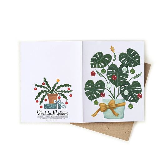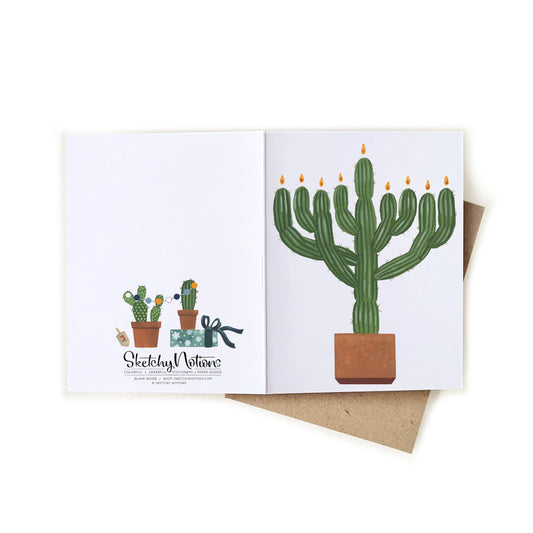 Hanukkah Cats + Plants Watercolor Wrap Card