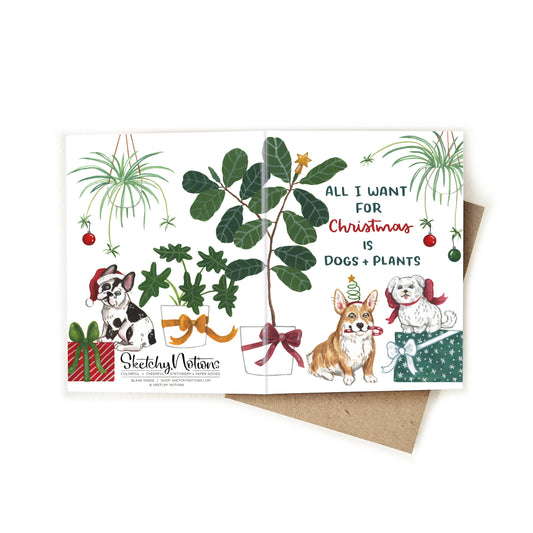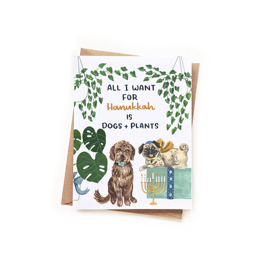Hanukkah Dogs + Plants Watercolor Wrap Card
