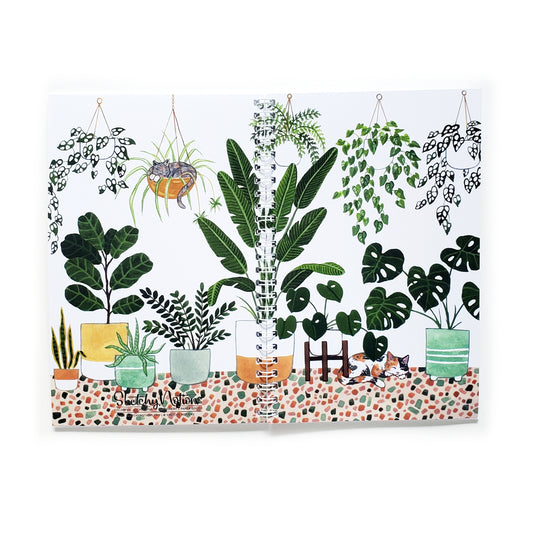 Cats + Plants Watercolor Art Print