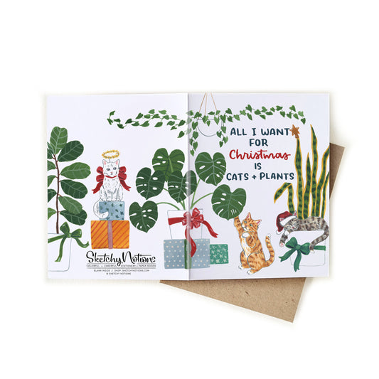 Hanukkah Cats + Plants Watercolor Wrap Card