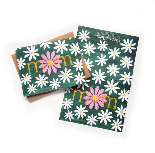 Mom Poppies Watercolor Card with Wrapped Illustration
