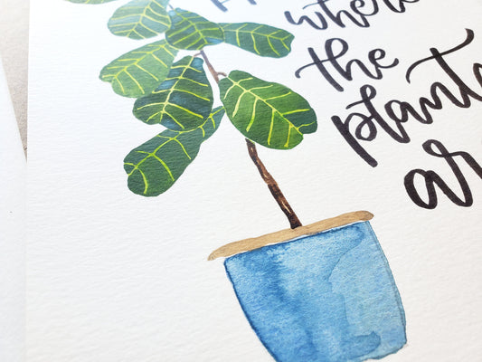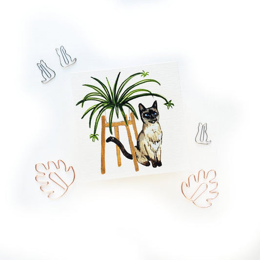 Framed Tiny Cat & Plant "Elvis" Watercolor Original