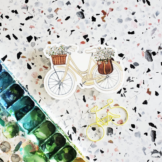 Yellow Bicycle with Pink Peonies Sticker
