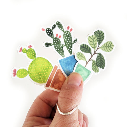 Plant Sticker Pack - Fiddle Leaf Fig, Prickly Pear and Blooming Cactus