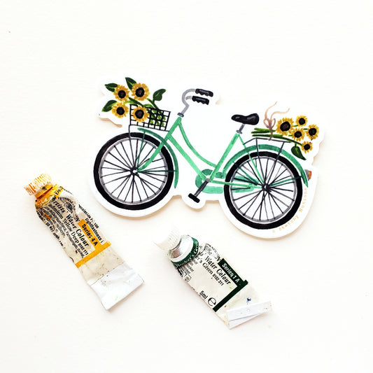 Teal Bicycle Sunflowers Sticker