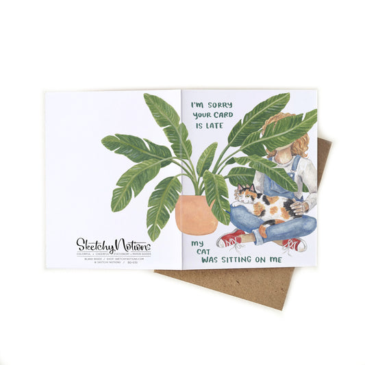Belated Funny Birthday Cat + Plant Card