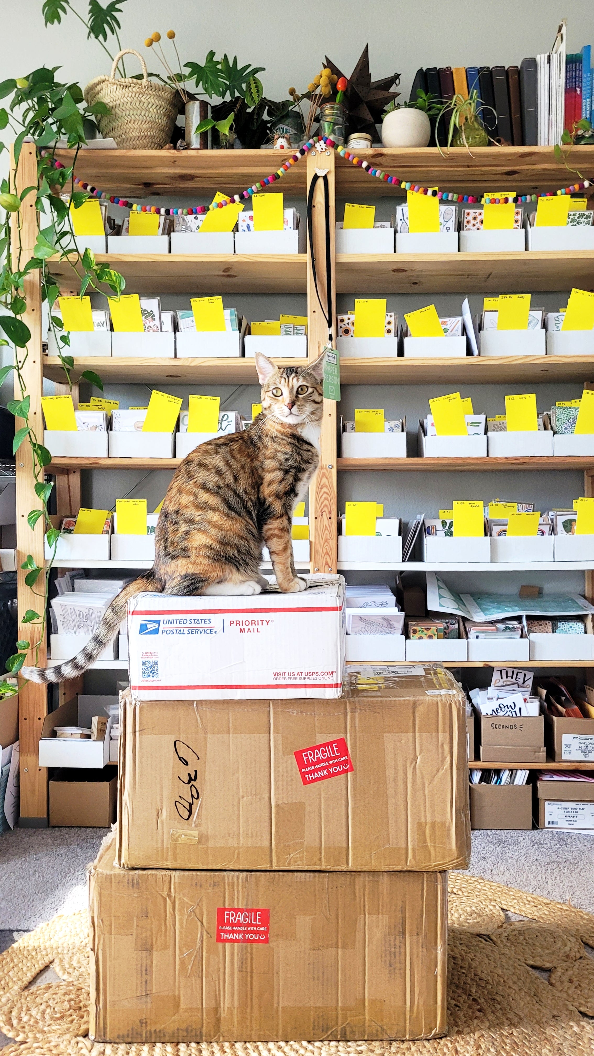 We aspire to create original artwork that spreads a little cheer, even on your gloomier days. We promise to work hard to bring you unique products that capture our love of analog mediums, snail mail, cats, plants and the occasional dog.