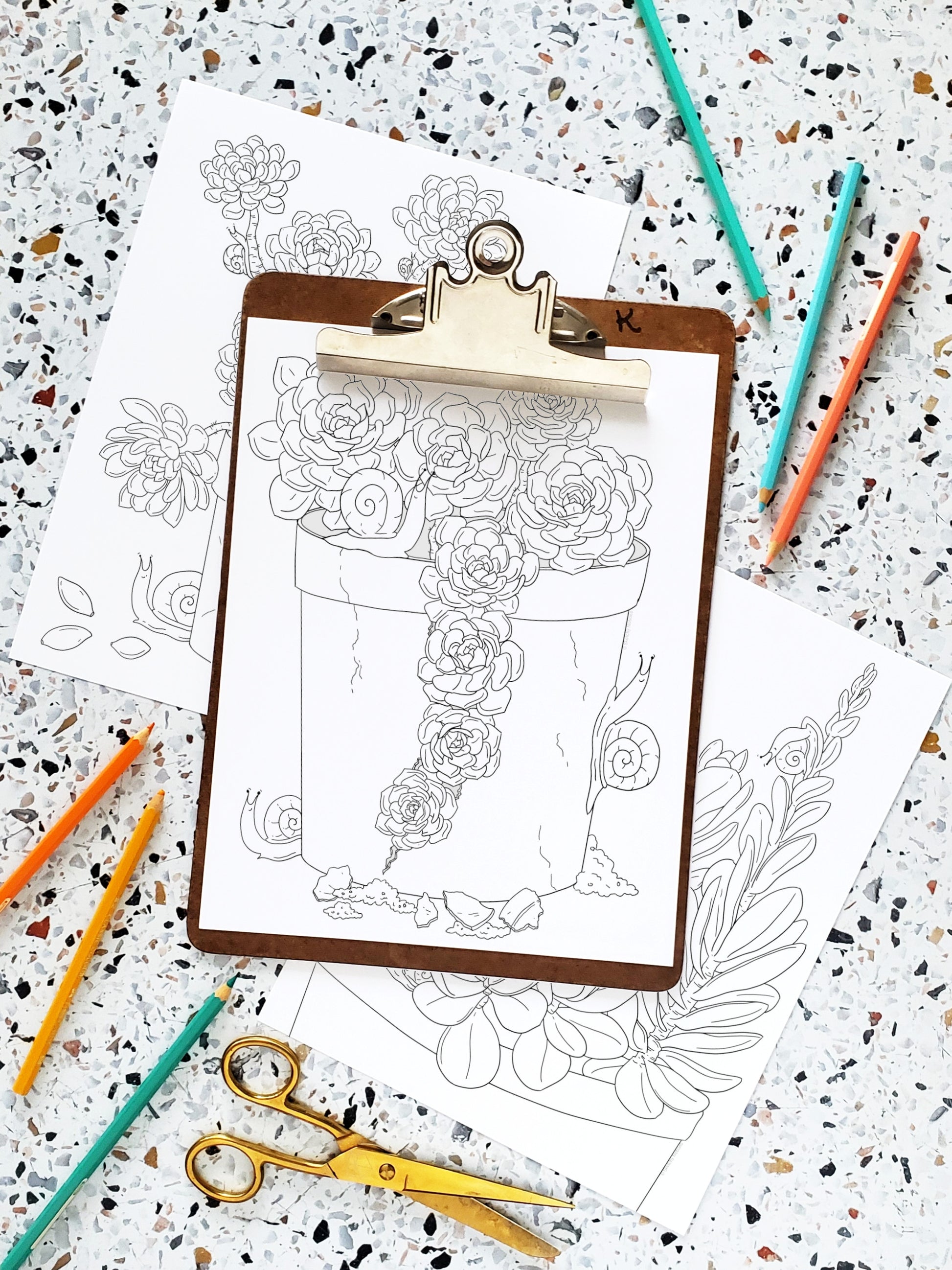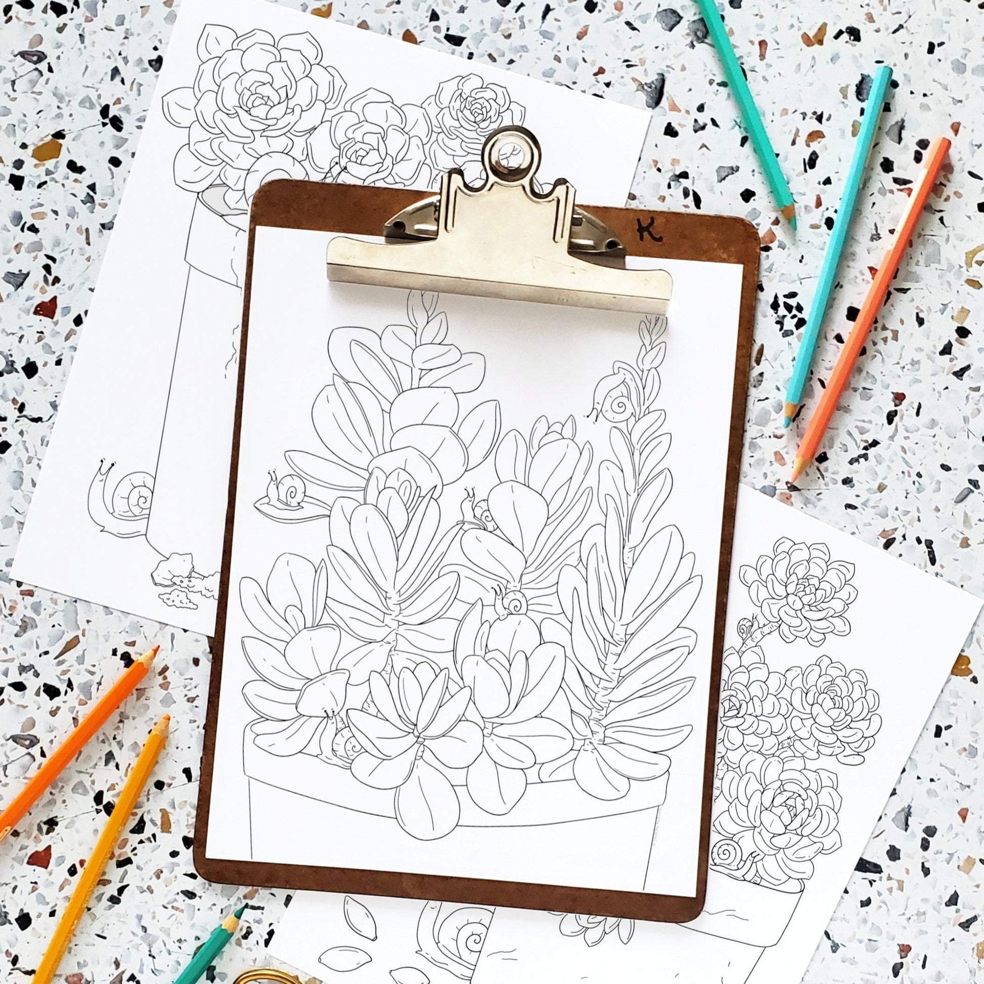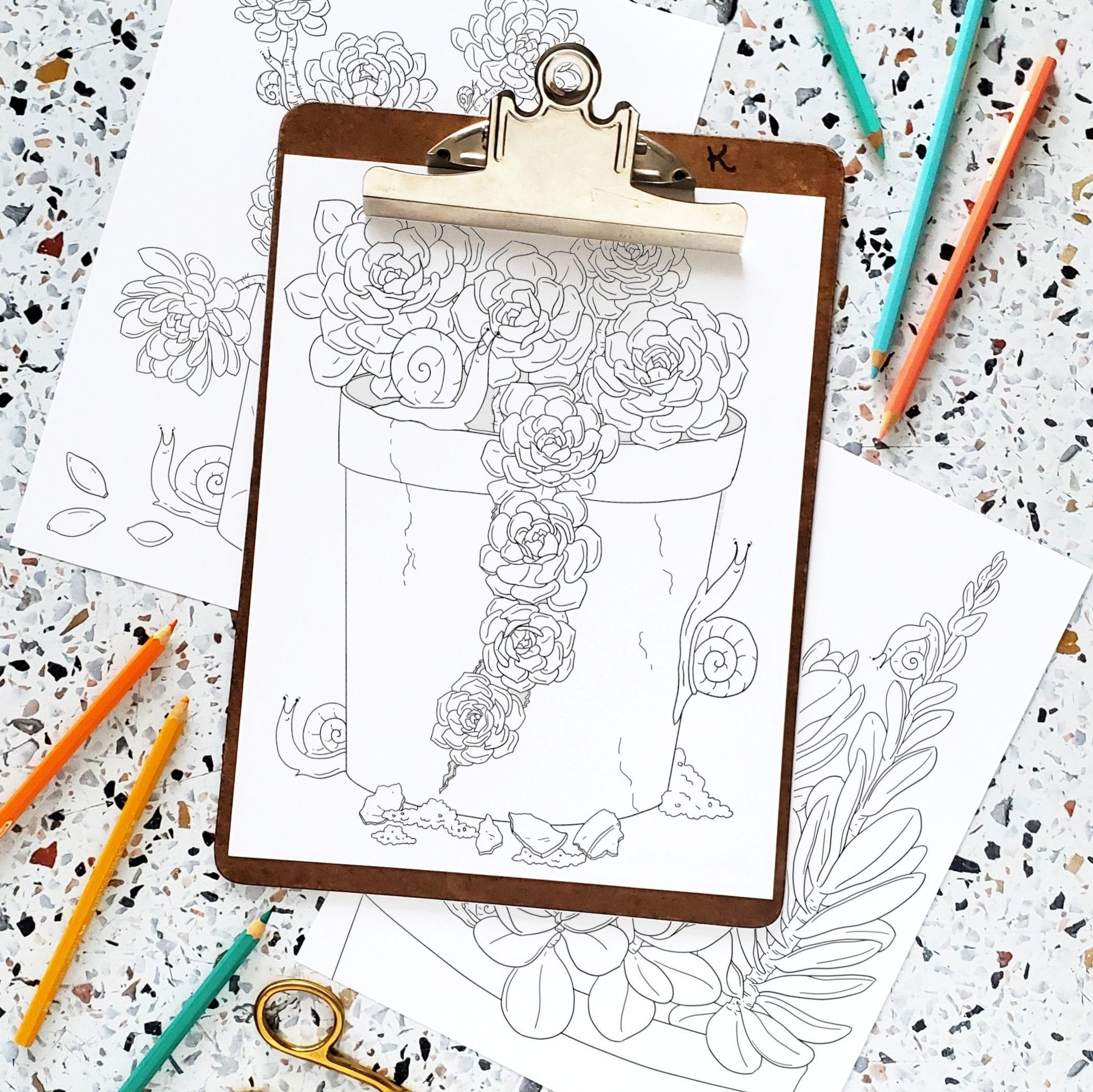 Unwind and have fun with our Snails + Succulents Coloring Pages! Discover sneaky snails hidden among beautifully hand-drawn succulents. Simply download, print, and enjoy! Perfect for a relaxing and playful activity (with or without kiddos).