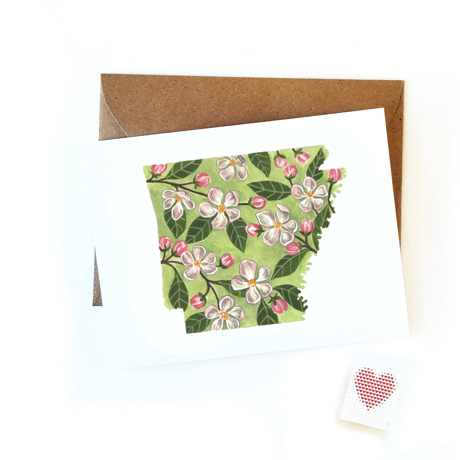 Experience the beauty of Arkansas's state flower, the Apple Blossom, with this unique greeting card! Show your friends and fam you care with this one-of-a-kind watercolor illustration – perfect for any occasion. You won't find a better way to say 'I love ya' in The Natural State!