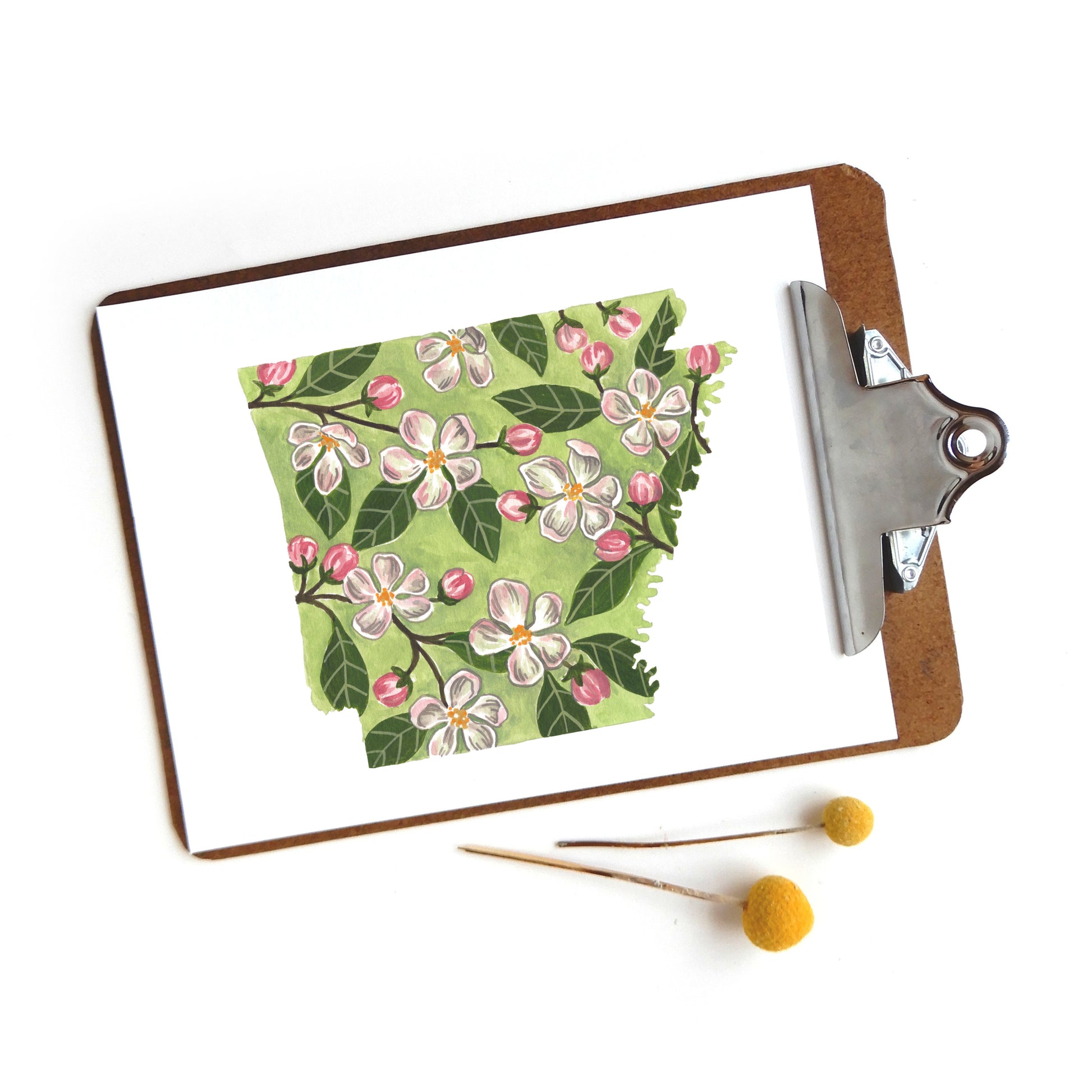 Grab this Arkansas Apple Blossom Print and state your style! This vibrant floral art print features the classic Arkansas state flower -- the Apple Blossom -- as a watercolor illustration that'll transform any wall from dull to dazzling. So don't be a blossoming daisy, add a little sweet southern charm to your décor!
