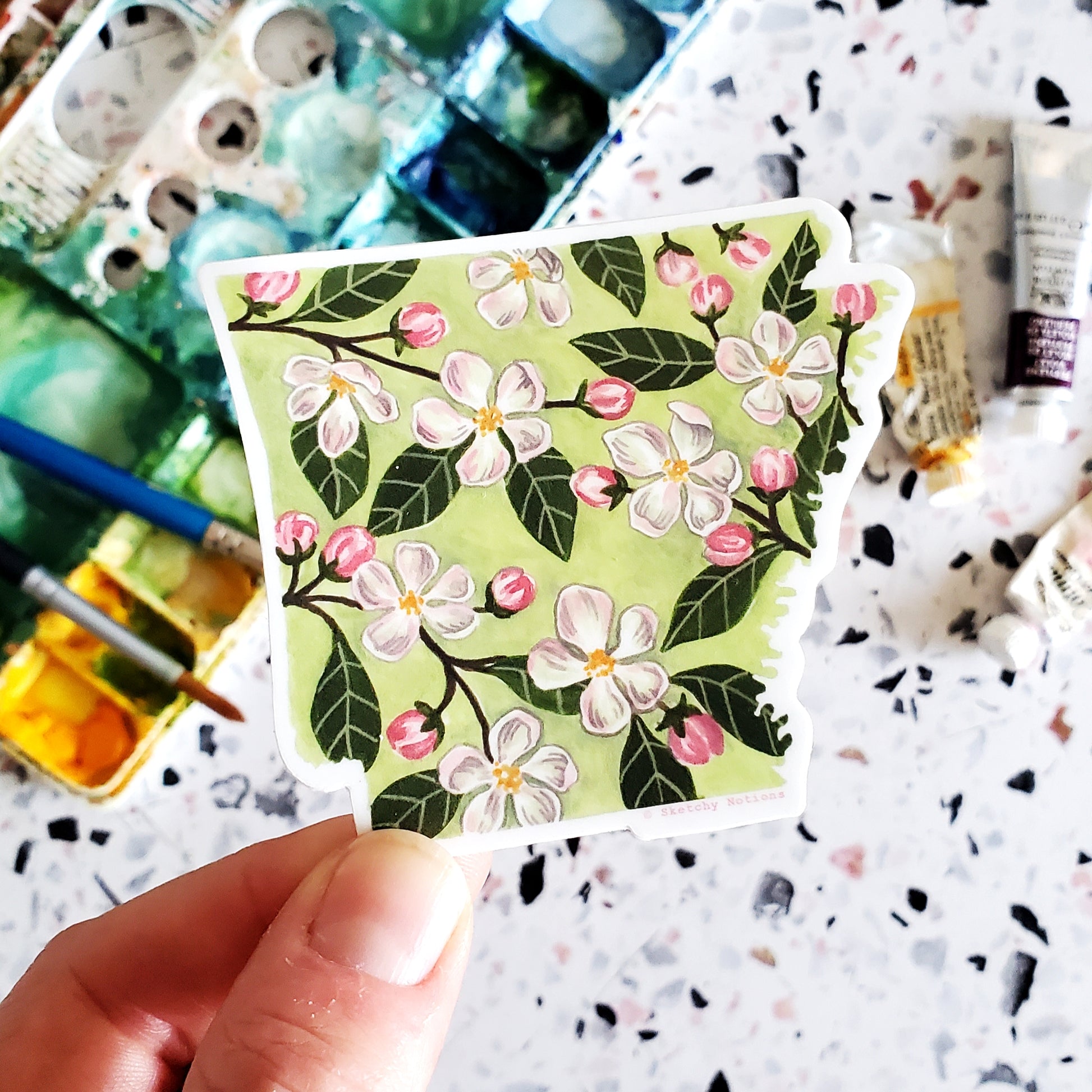 Make your Arkansas pride blossom with this delightful Apple Blossom Sticker! Featuring a watercolor-style illustration of the Arkansas state flower, this waterproof vinyl sticker adds a splash of sunny color to your laptop, water bottle, or anywhere else you want to show your pride. Get one today and show your love of the Natural State!