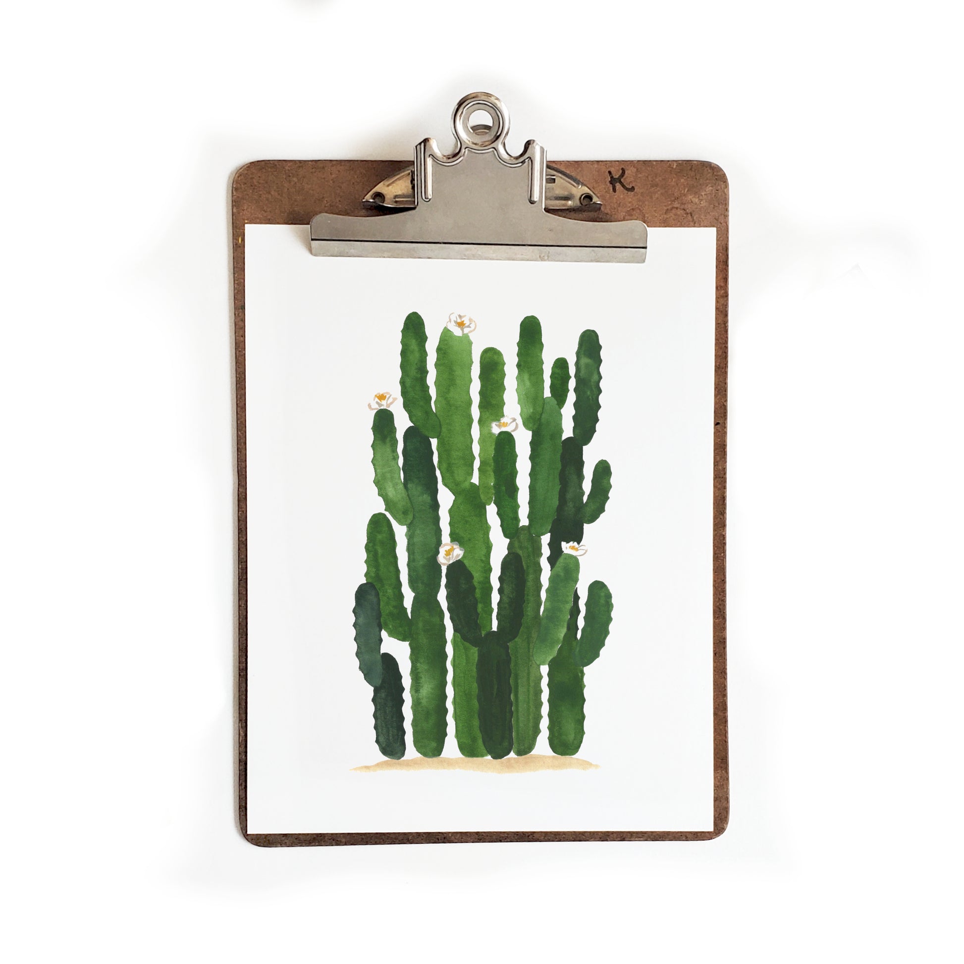 Add a touch of desert whimsy to your gallery wall with this blooming Senita Cactus watercolor print. Its original design captures the Southwest charm of these vibrant, thorny plants. Perfect for adding a splash of color to any room.