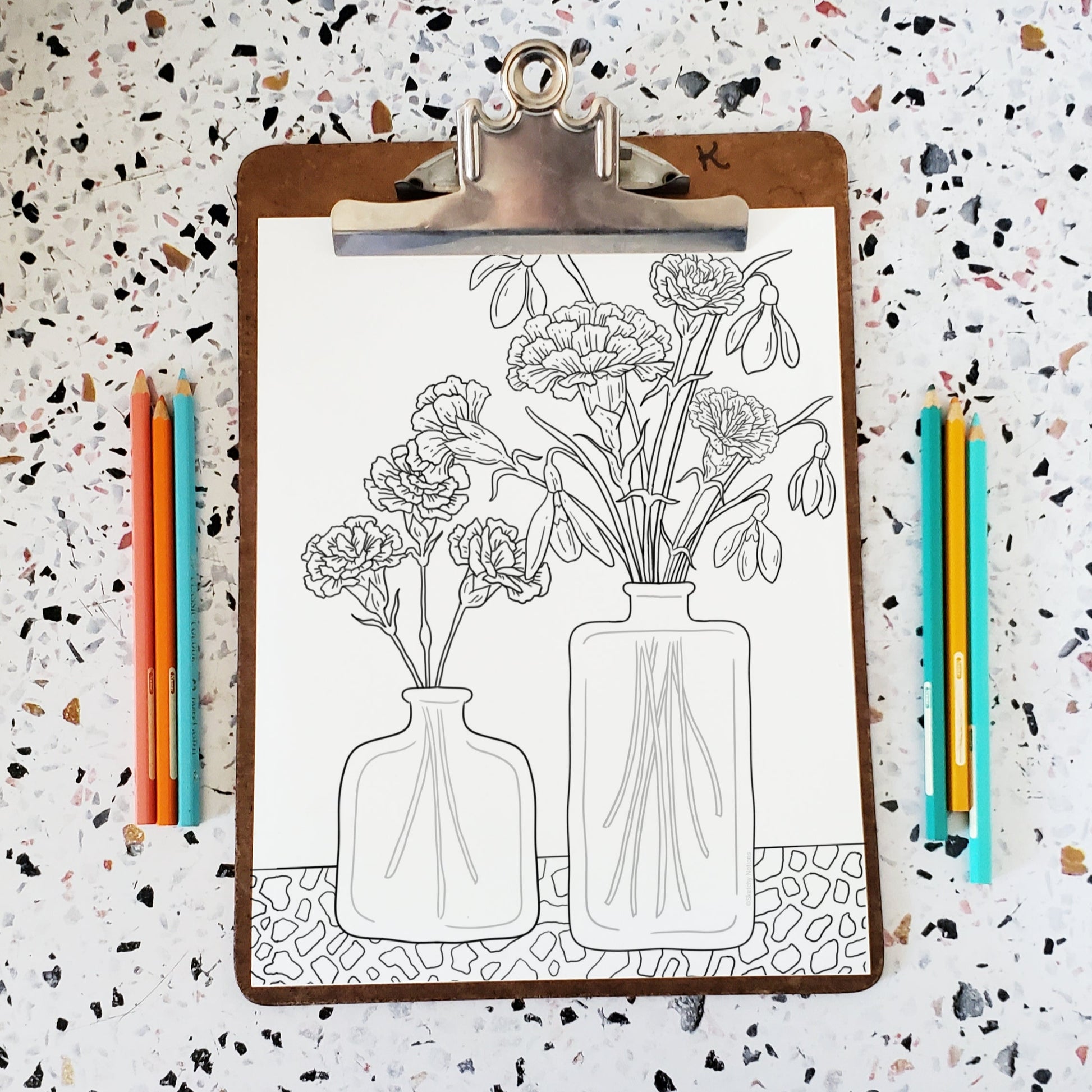 Carnation + Snow Drop Coloring Page