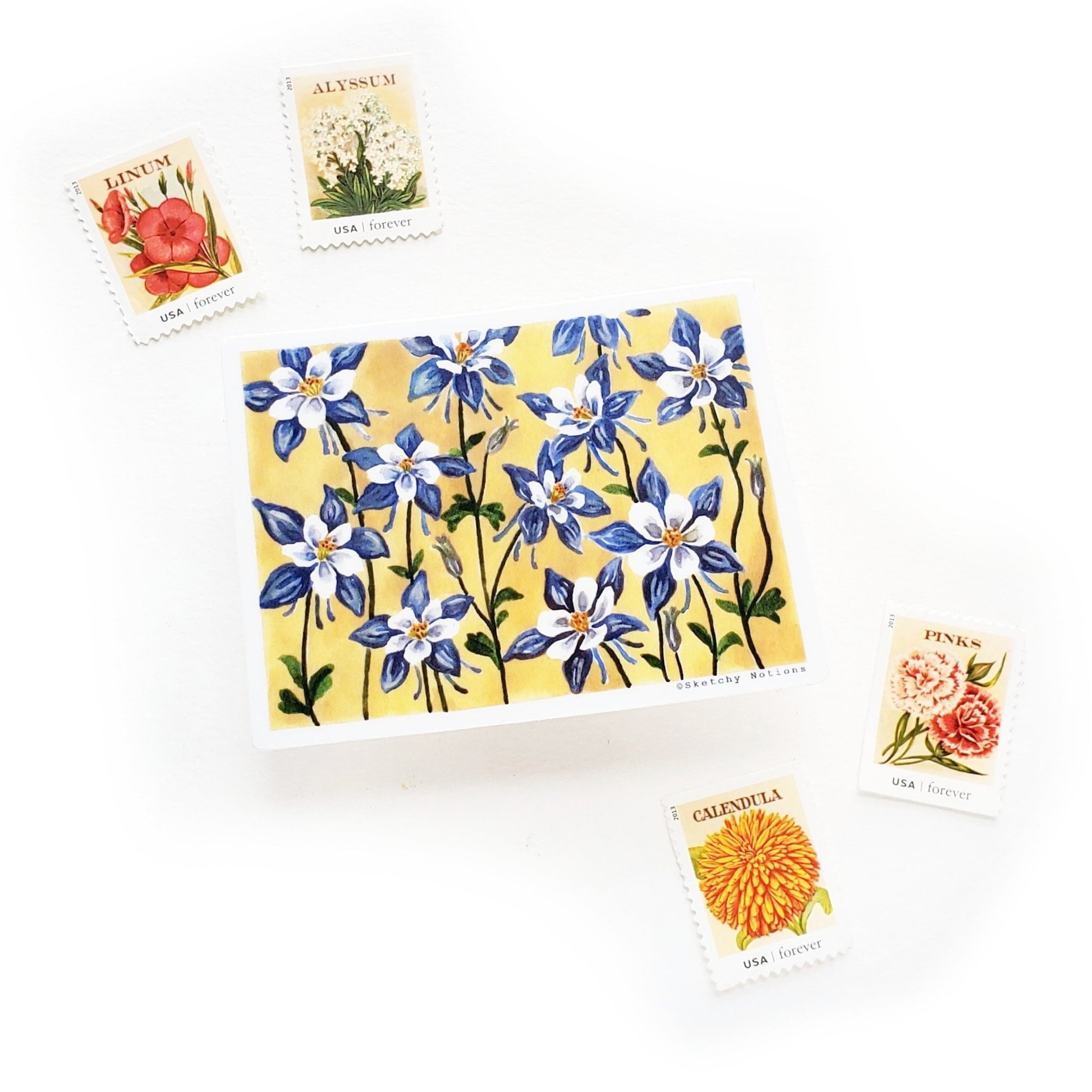 Show your love for Colorado all the time with this darling sticker featuring a watercolor of Colorado and the state flower, the Columbine!