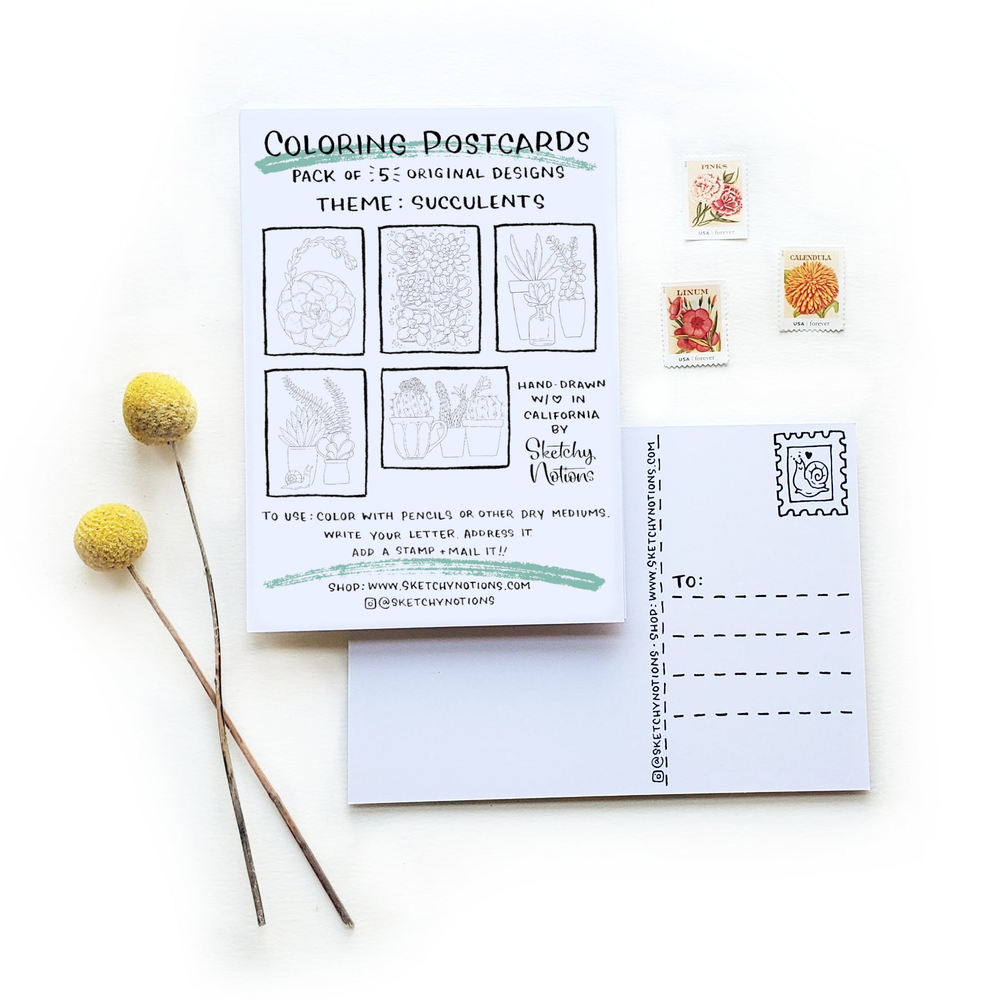 Give your snail mail game a pop of personality with this handy Coloring Postcards Succulents Set! It comes with 5 totally groovy succulent designs, all lovingly hand-drawn. Color 'em in and pop them in the post with a Forever stamp – talk about a creative way to stay in touch!