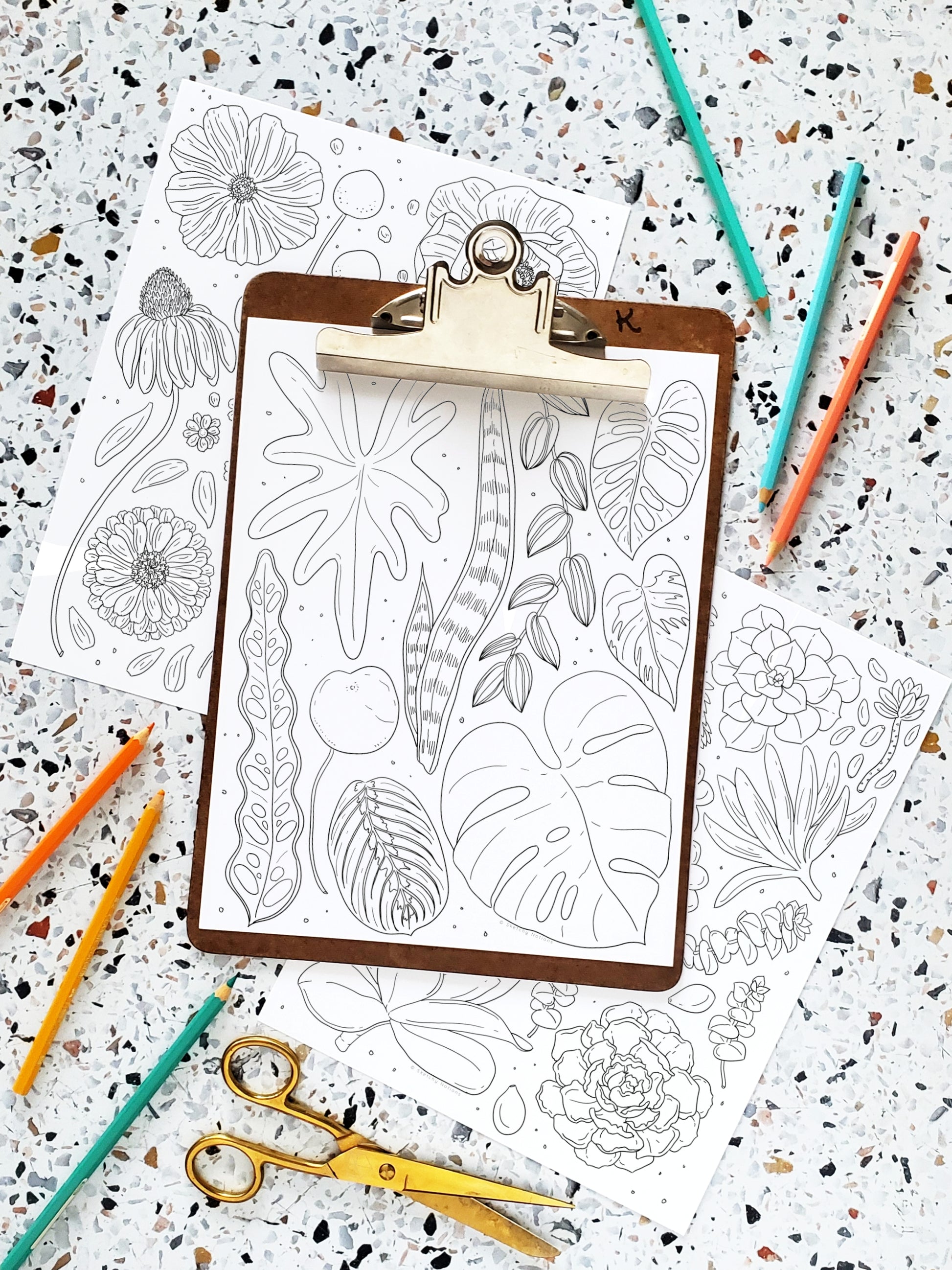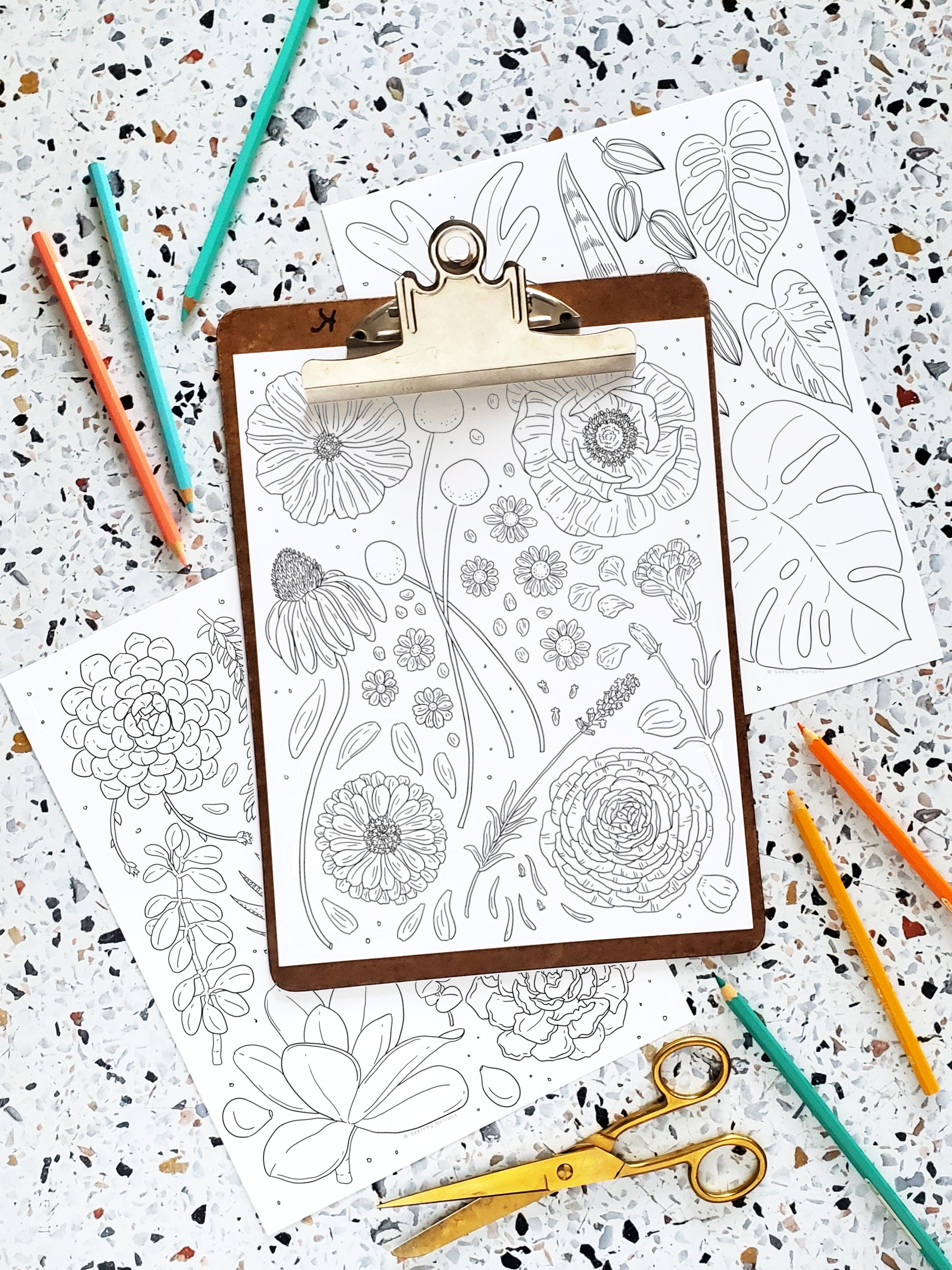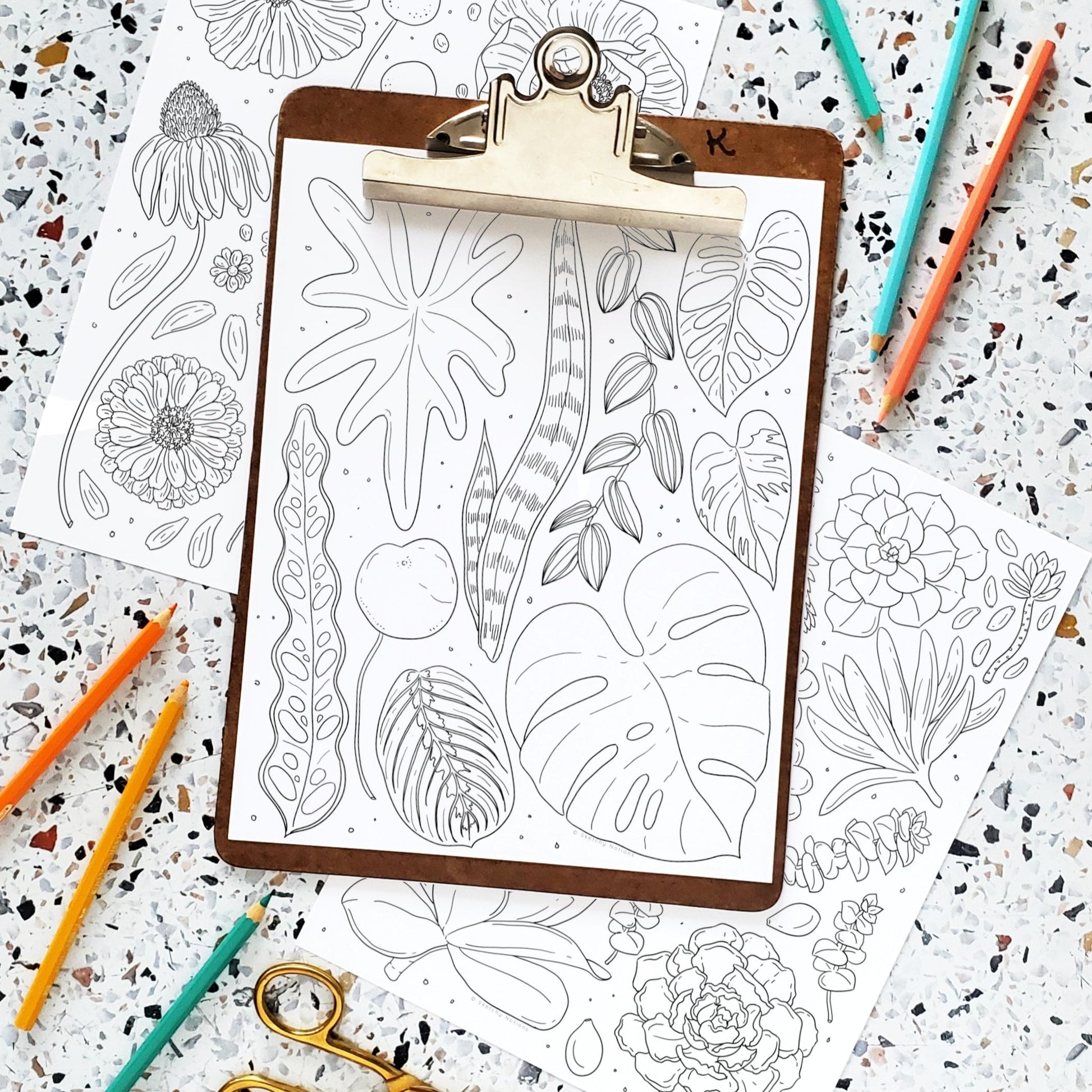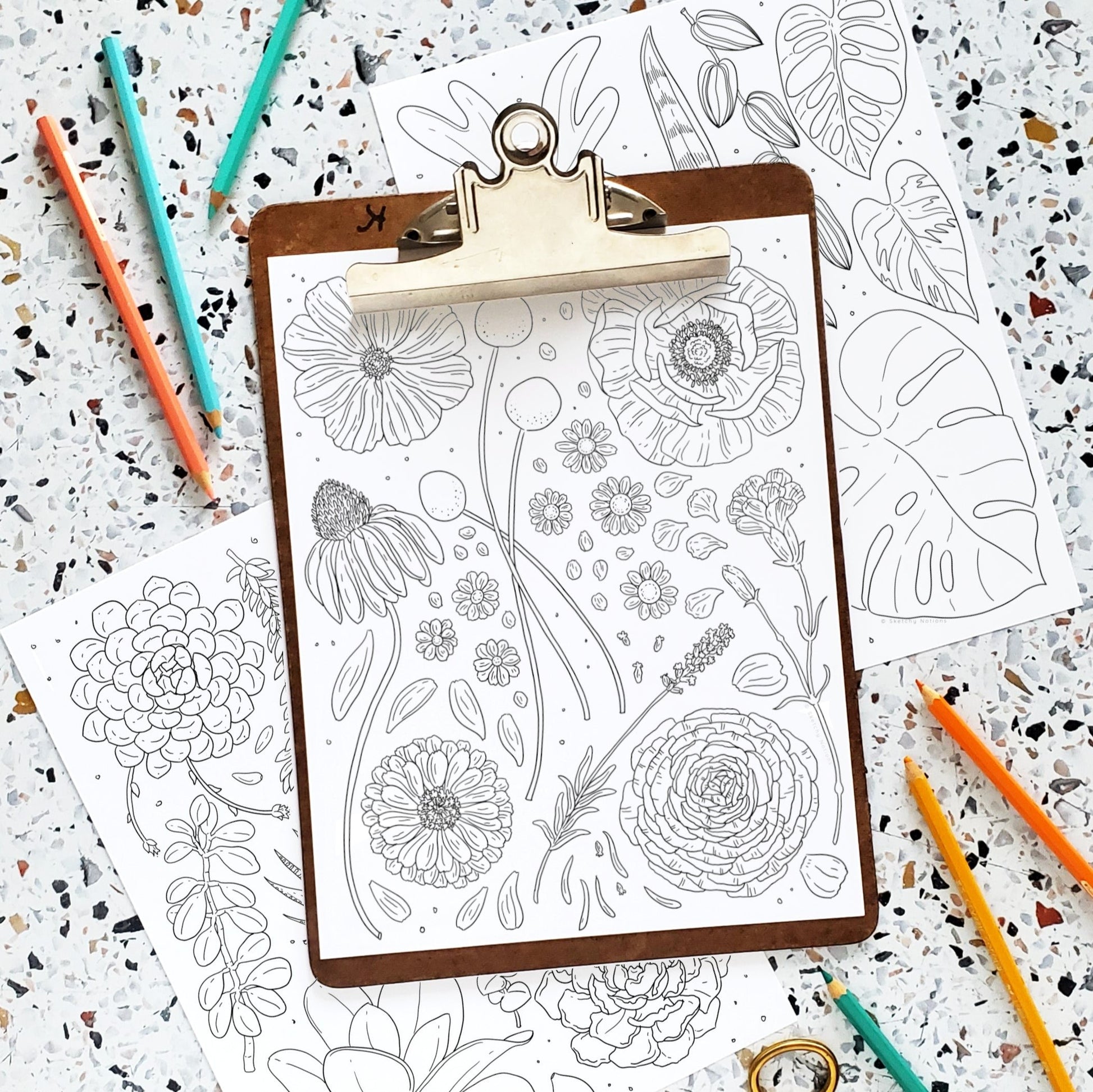 Want some more nature-y coloring pages? Check out our Spring Flowers and Pollinator Plants + Critters Coloring Sets. Want these for free? Sign up for our newsletter!