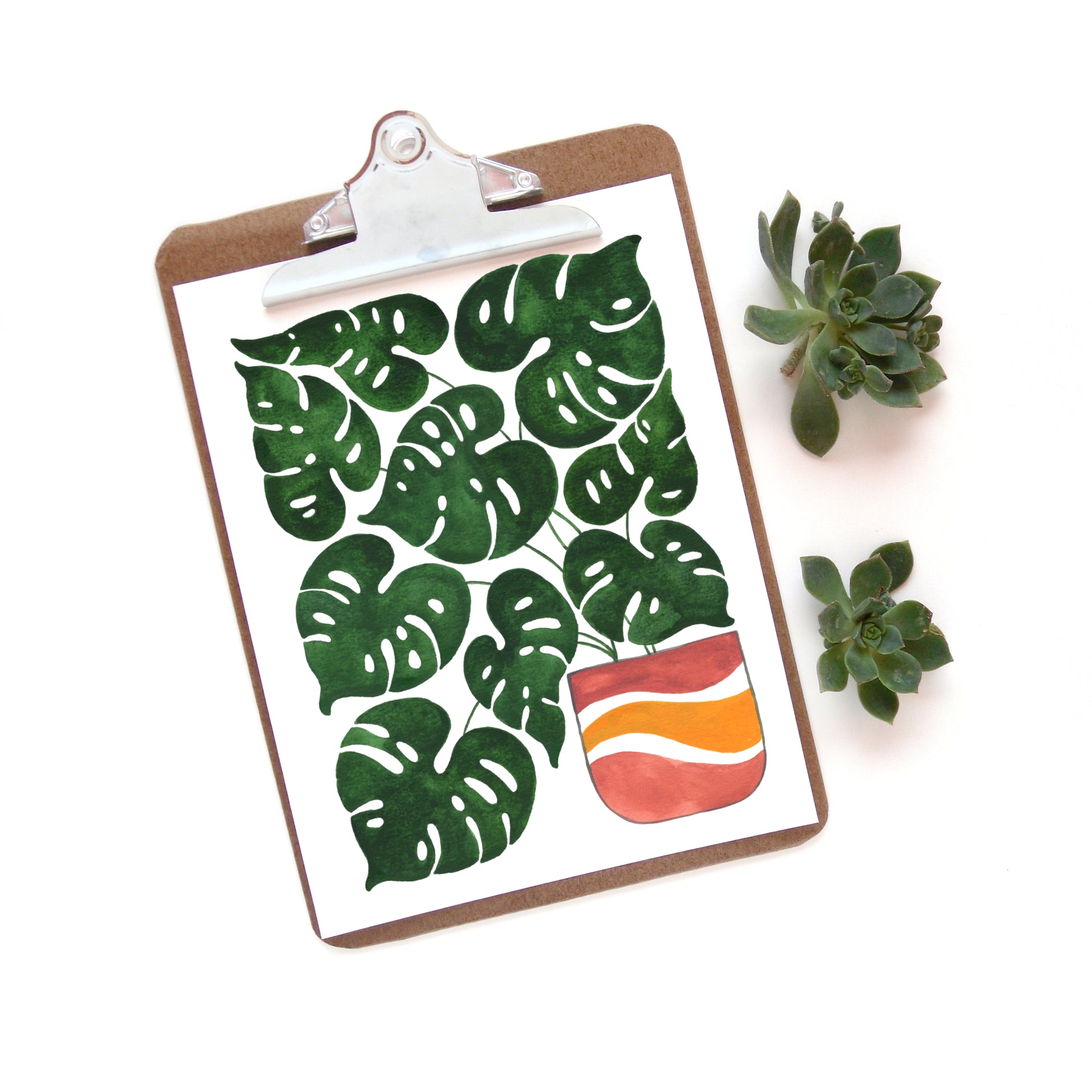 Brighten your walls with this funky monstera watercolor! This page is part of a newer collection we're building of more abstracted plant watercolors with some mid-century modern vibes!