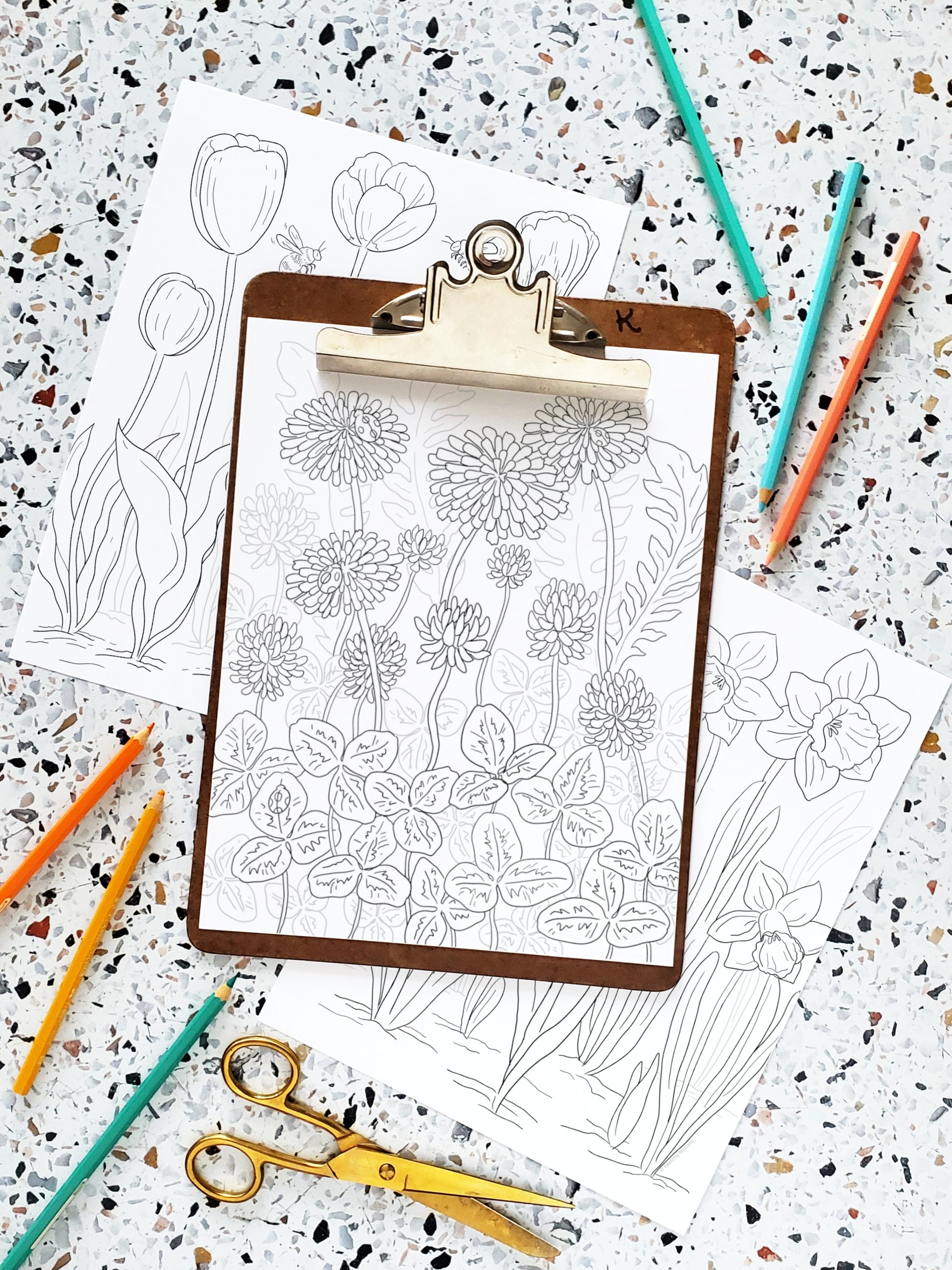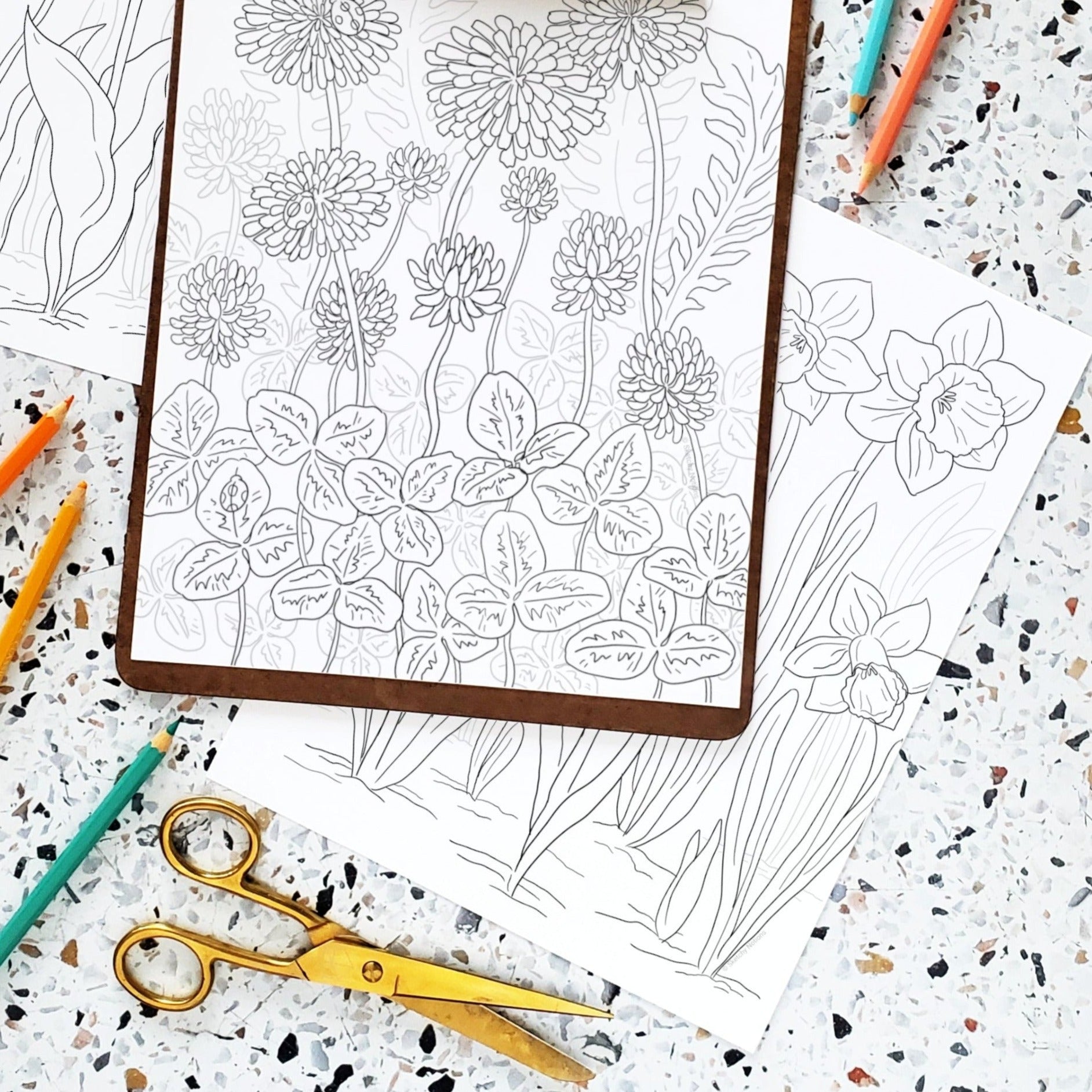 Want some more spring-y coloring pages? Check out our Spring Flowers and Pollinator Plants + Critters Coloring Sets. Want these for free? Sign up for our newsletter!