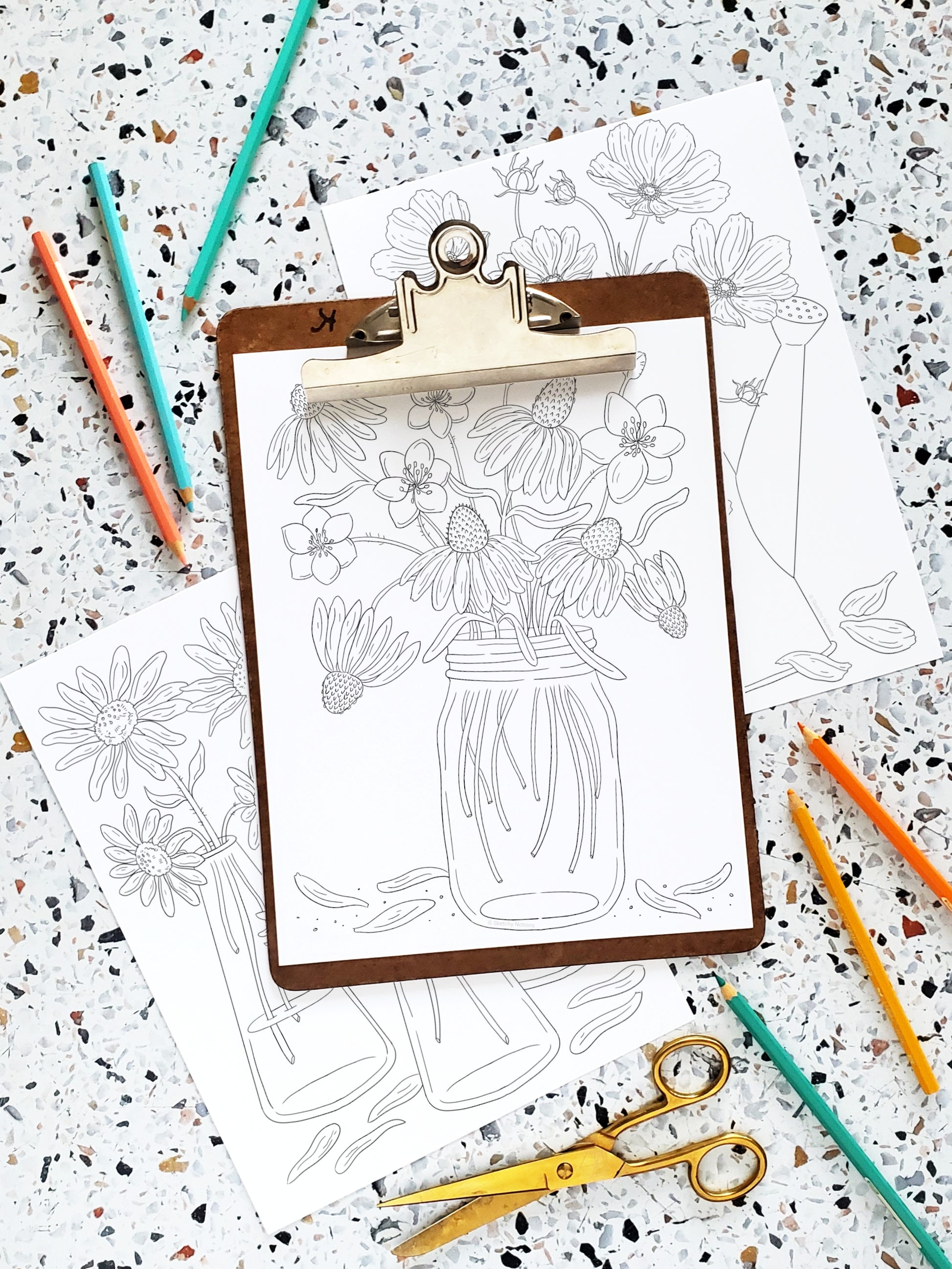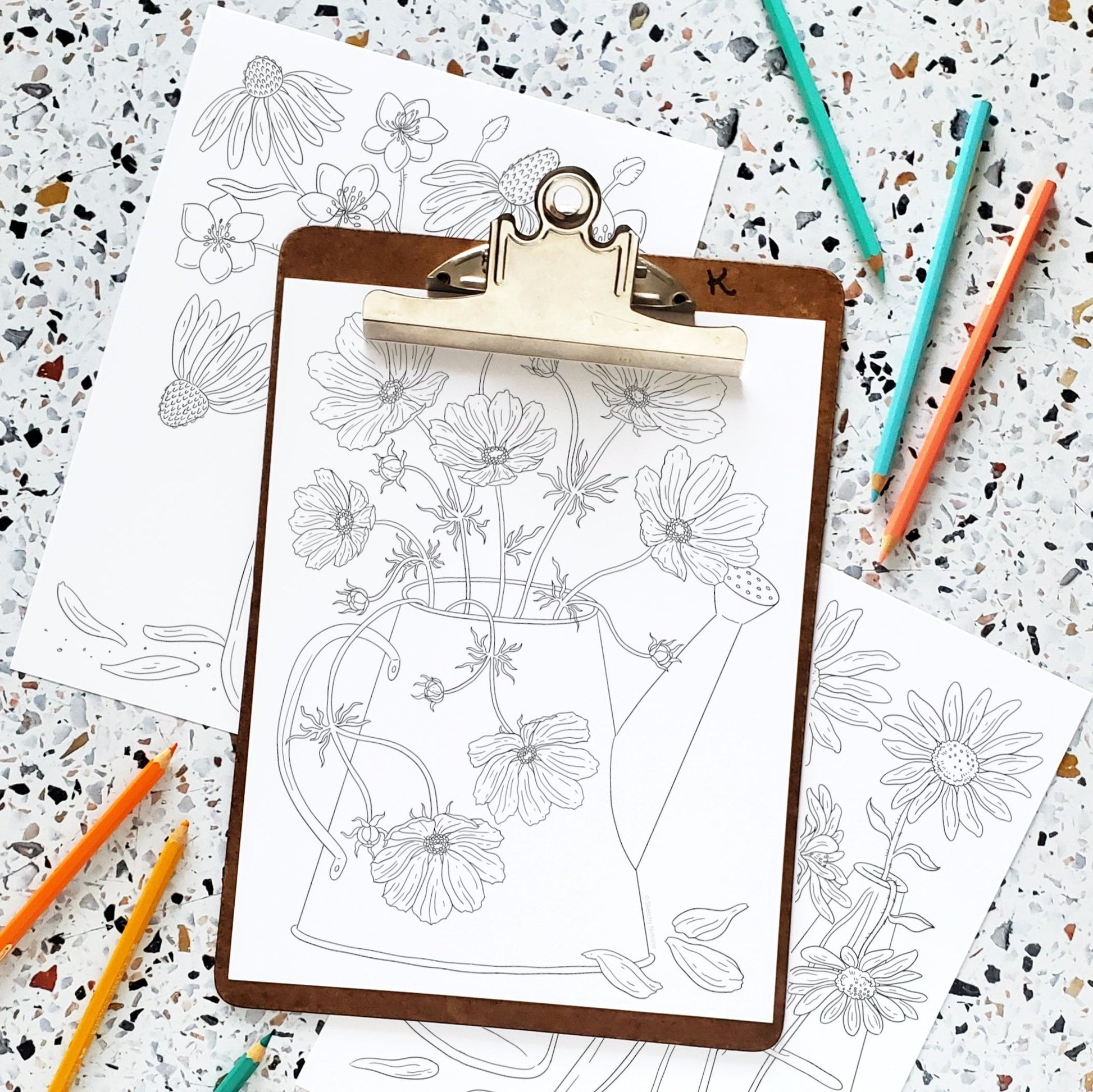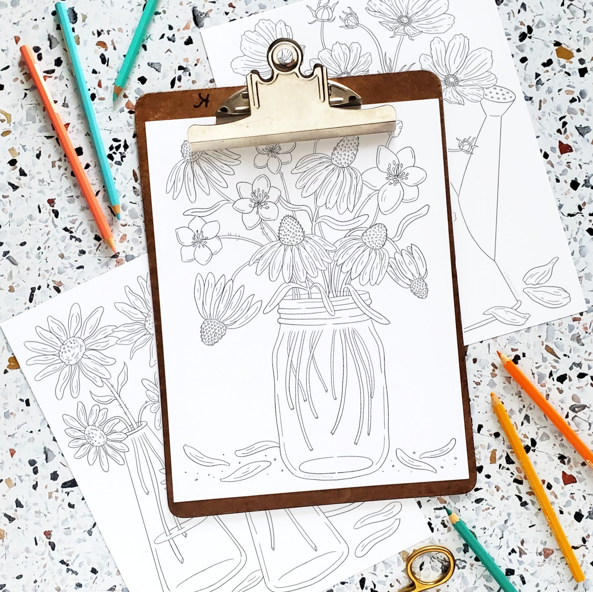Add a pop of color to your summer with our hand-drawn coloring pages featuring sunny bouquets of wildflowers, including Cosmos, Coneflowers, Cream Cups, and Wild Sunflowers. Each page is uniquely drawn and ready to be brought to life with your own creative flair.