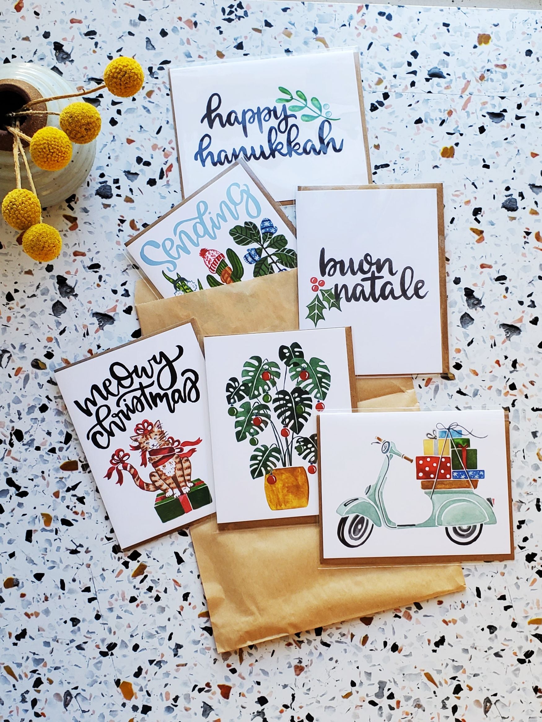 - Christmas + Hanukkah: 3 Xmas and 3 Hanukkah cards, cover your bases